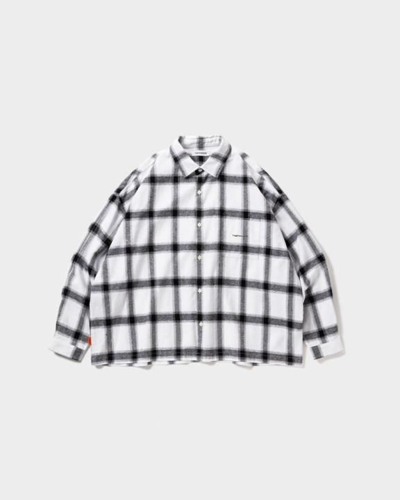 微起毛のチェック生地を使用した長袖ボタンアップシャツ。