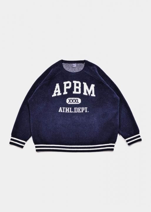 カレッジロゴをジャガードで表現したニットセーター。 クラシカルなデザインをニットで表現した、シンプルながらも個性的な一枚。 ========== Mサイズ 裄丈 : 72cm 身幅 : 69cm 着丈 :68 cm Lサイズ 裄丈 :73 cm 身幅 : 72cm 着丈 : 71cm XLサイズ 裄丈 : 74cm 身幅 : 75cm 着丈 : 74cm ========== 【Navy/着用モデル】 身長 160cm 着用サイズ L